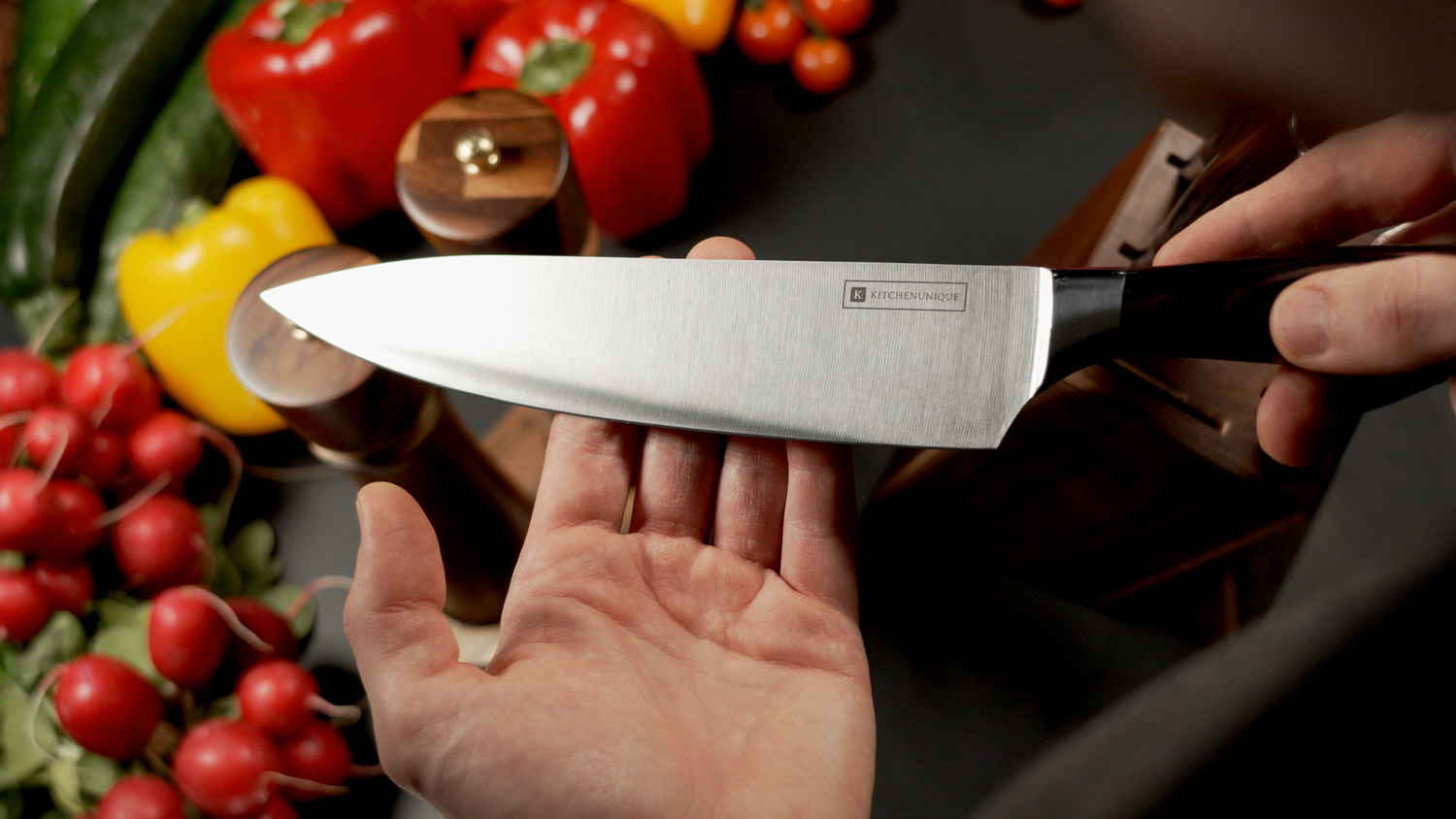Unser KitchenUnique-Küchenmesser besitzt einen hohen Kohlenstoffgehalt, der für maximale Langlebigkeit der Klinge sorgt.