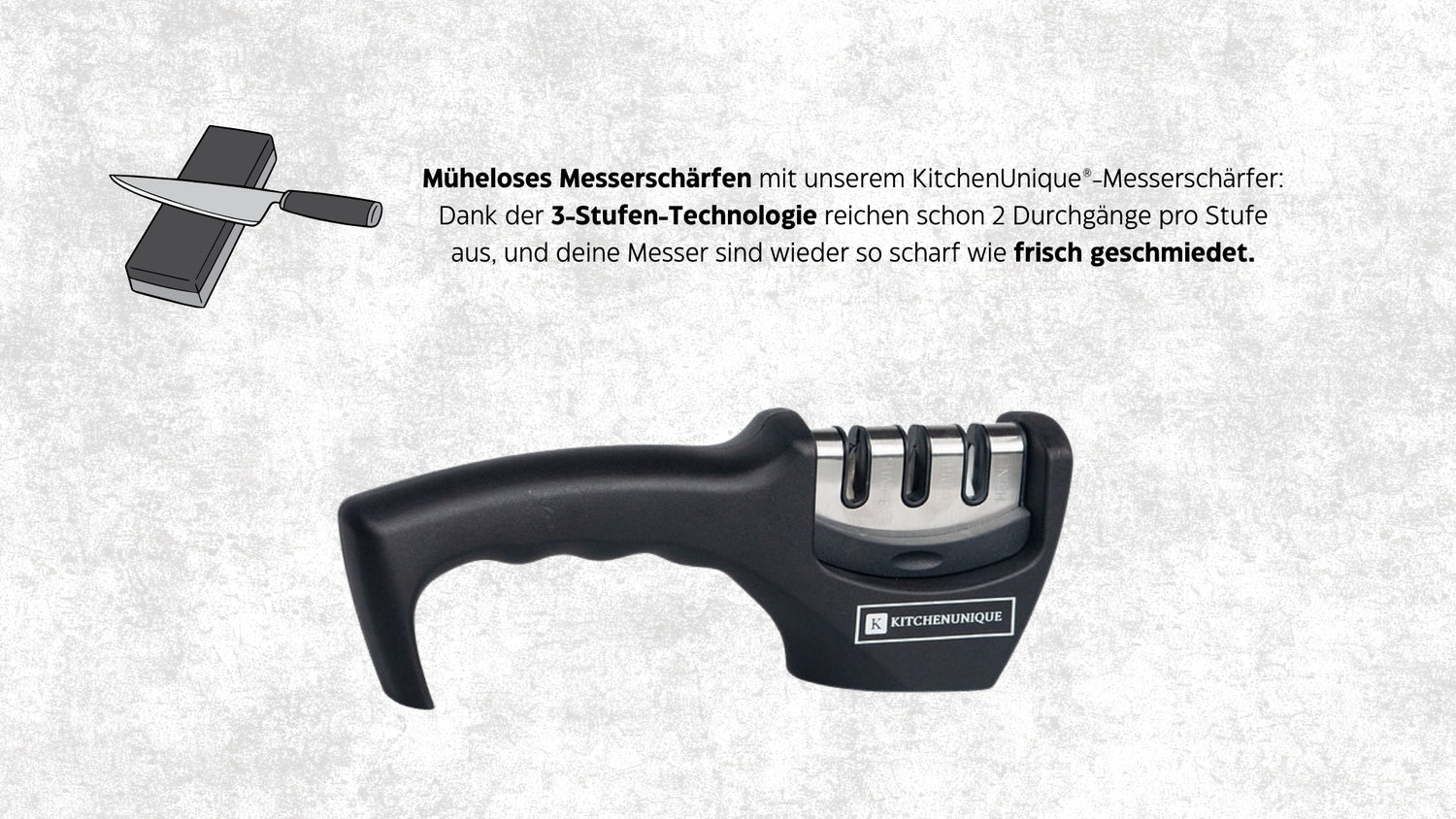 KITCHENUNIQUE® 3-Stufen-Messerschärfer – Für dauerhaft scharfe Klingen